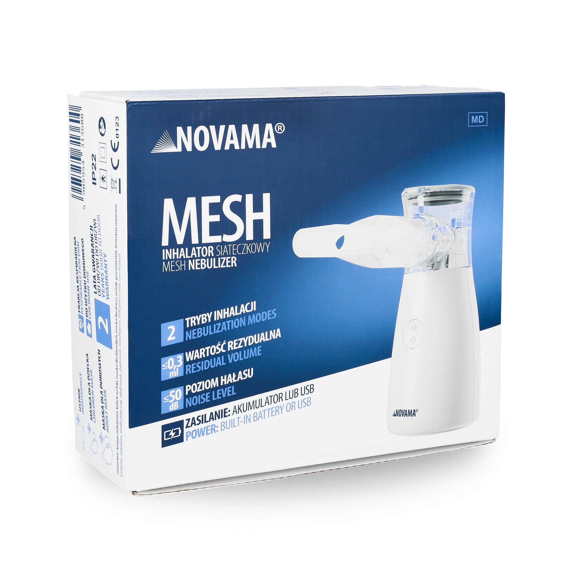 Novama Mesh to klucz do wygodnej terapii w każdym miejscu – nawet w podróży, czy w samochodzie! Jego mała i poręczna budowa sprawi, że zmieści się do każdej torby, dodatkowo chroniony załączonym woreczkiem podróżnym. Niski poziom hałasu i niewielka waga zapewni komfort inhalacji nawet u maluchów.