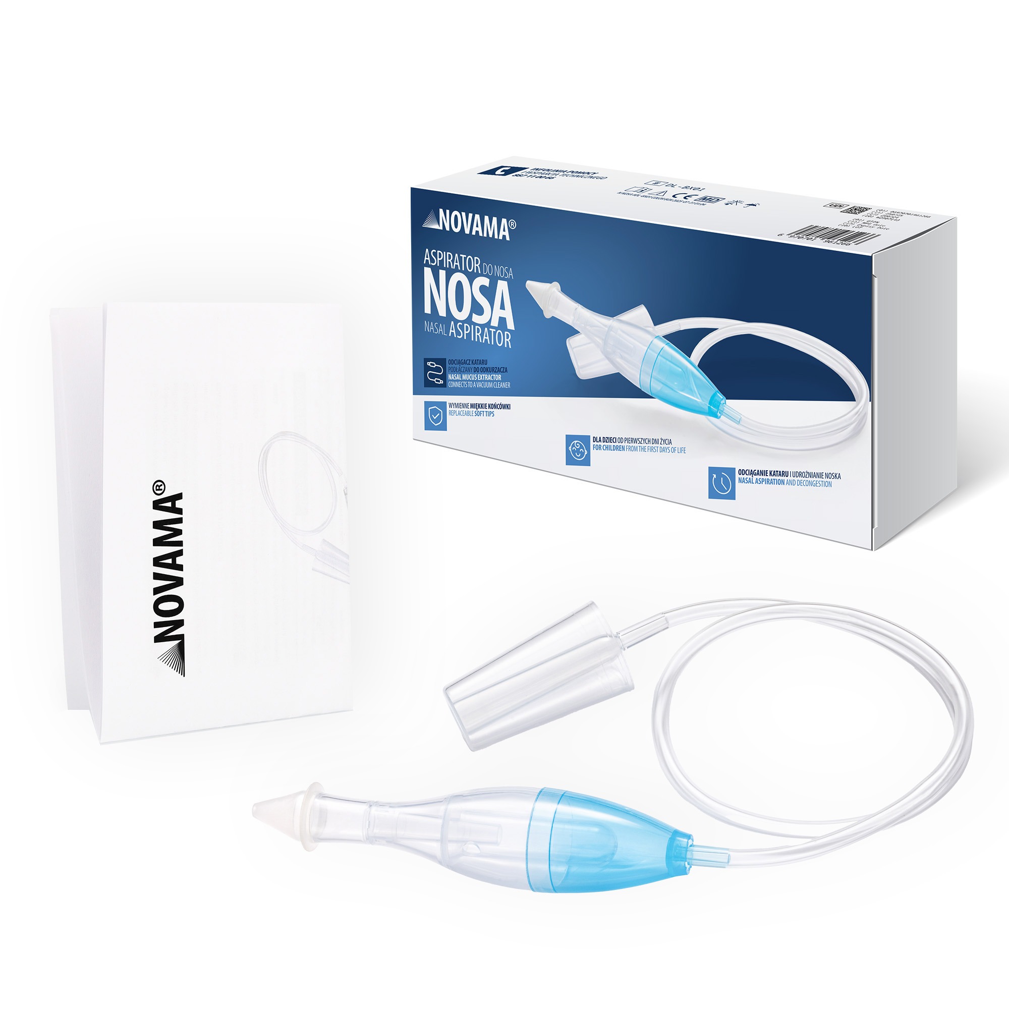 Novama Nosa dzięki redukcji siły ssania odkurzacza i miękkiej, delikatnej końcówce sprawdzi się nawet u najmłodszych dzieci, które potrzebują manualnego odciągania kataru.
